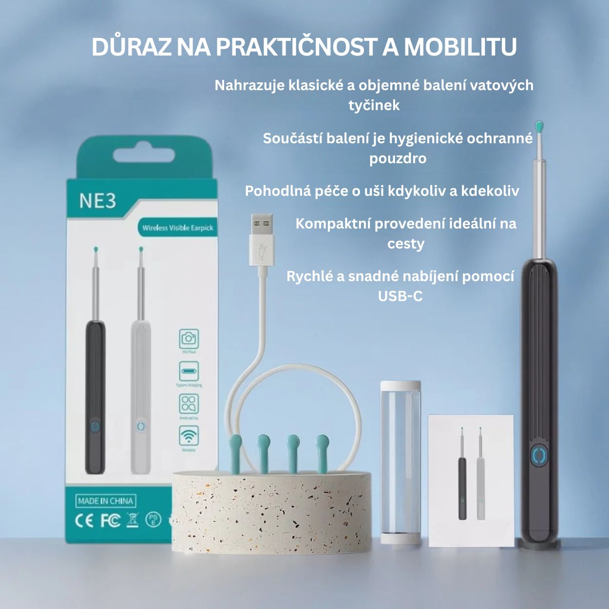 HD kamera ti poskytne jasný přehled o průběhu čištění, takže se vyhneš rizikům čištění „naslepo“, typickým při používání vatových tyčinek.